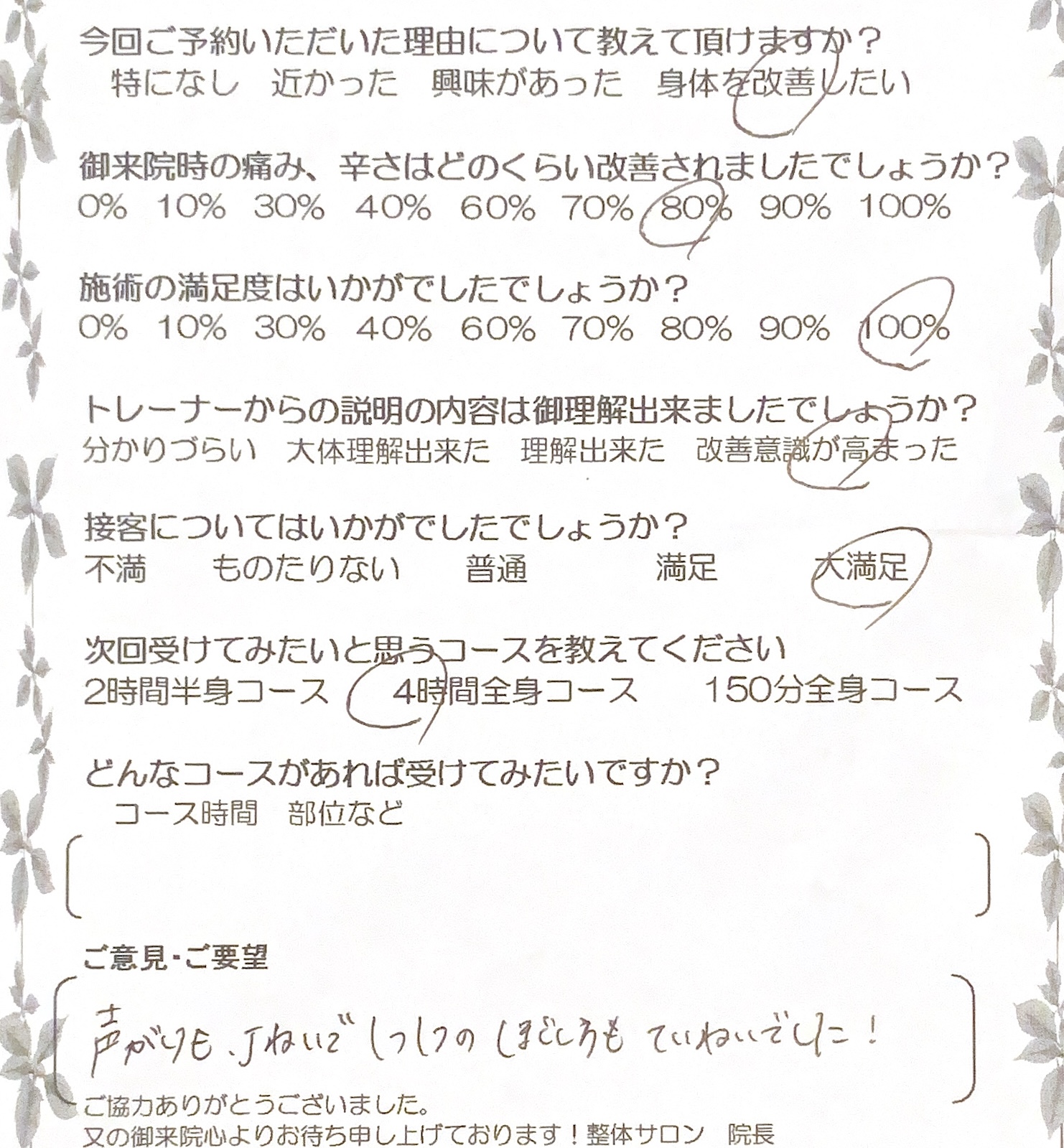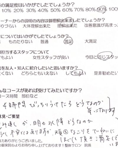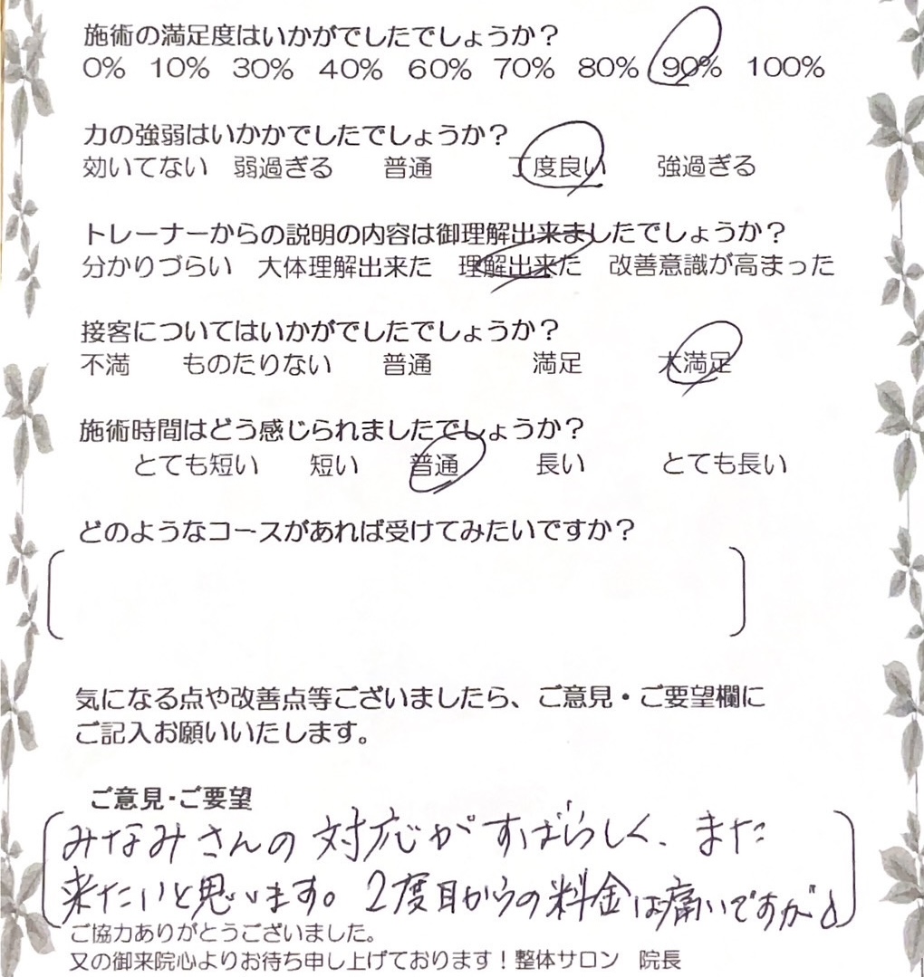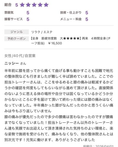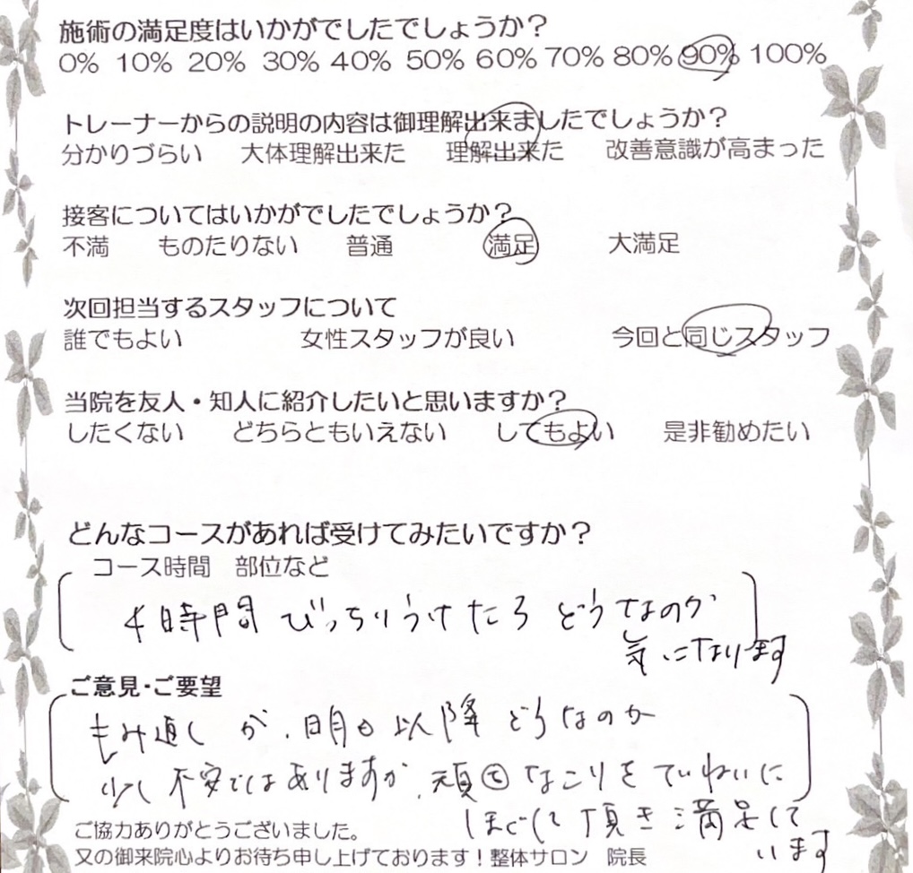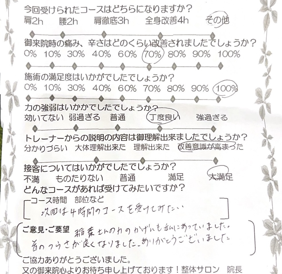 当サロンのスタッフはスクールの時から施術にプラス、コミュニケーションと人間性を大事にします。気配りや思いやりを持って患者様に接することで本当の休養を提供できると考えています。