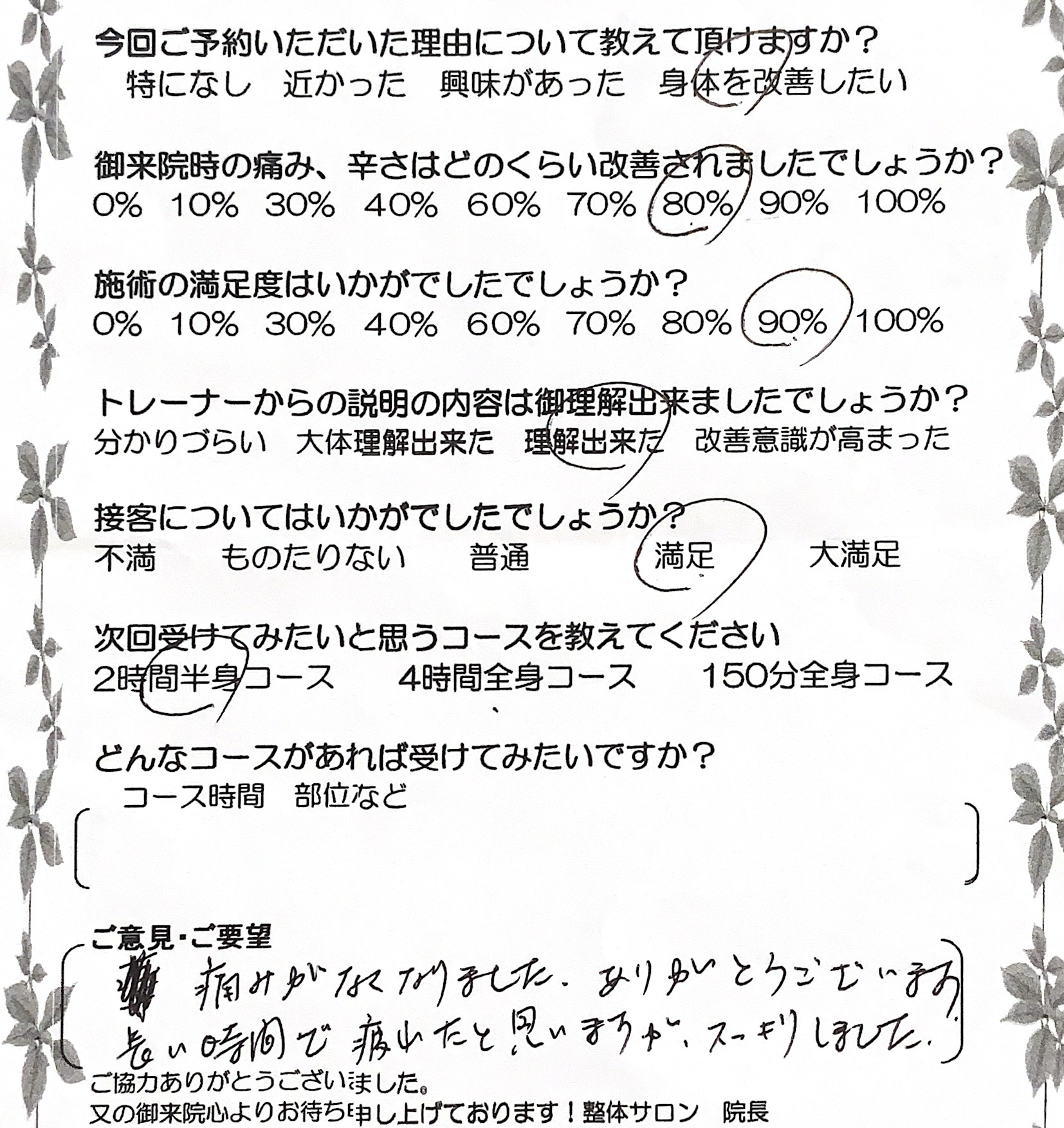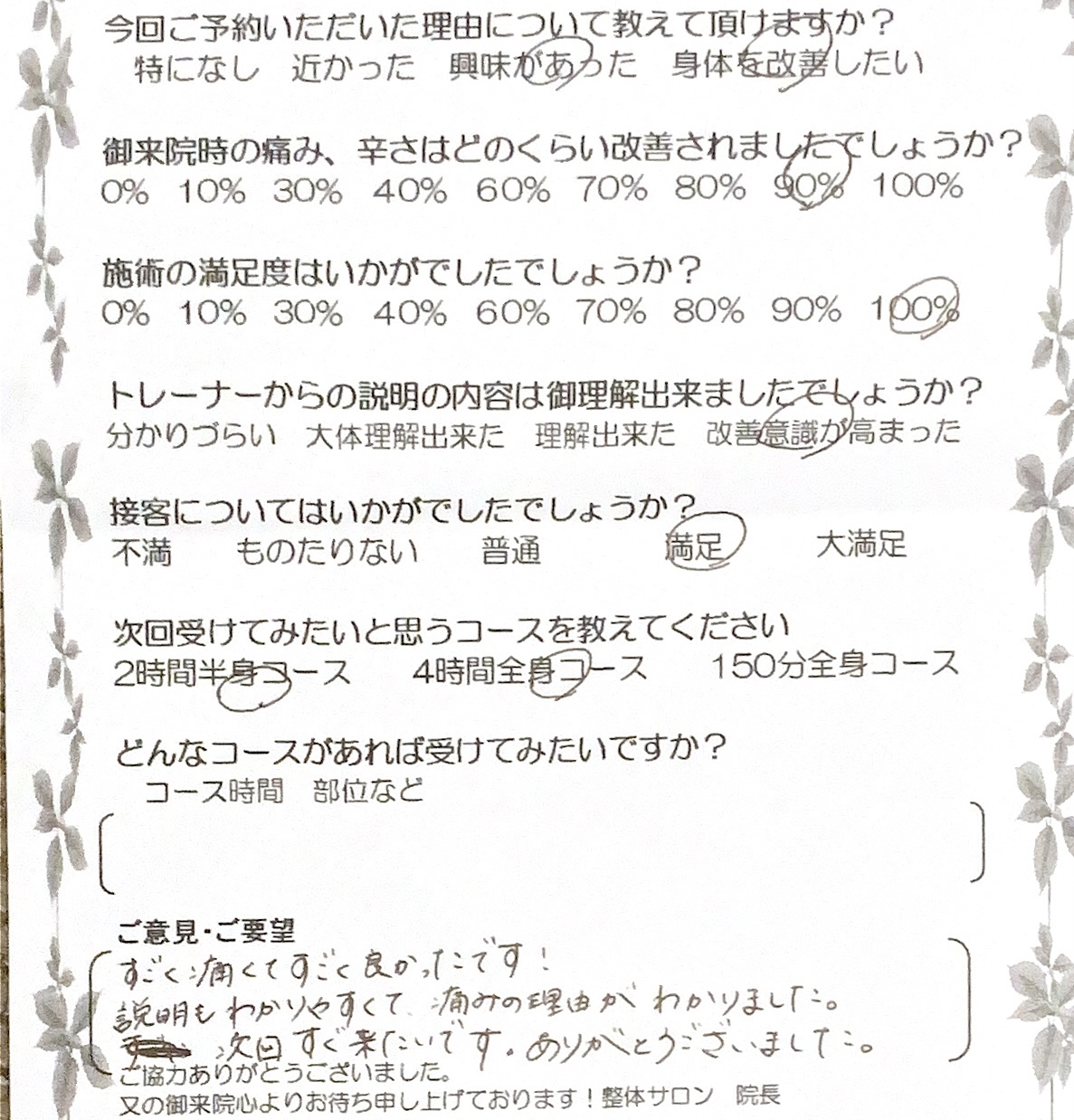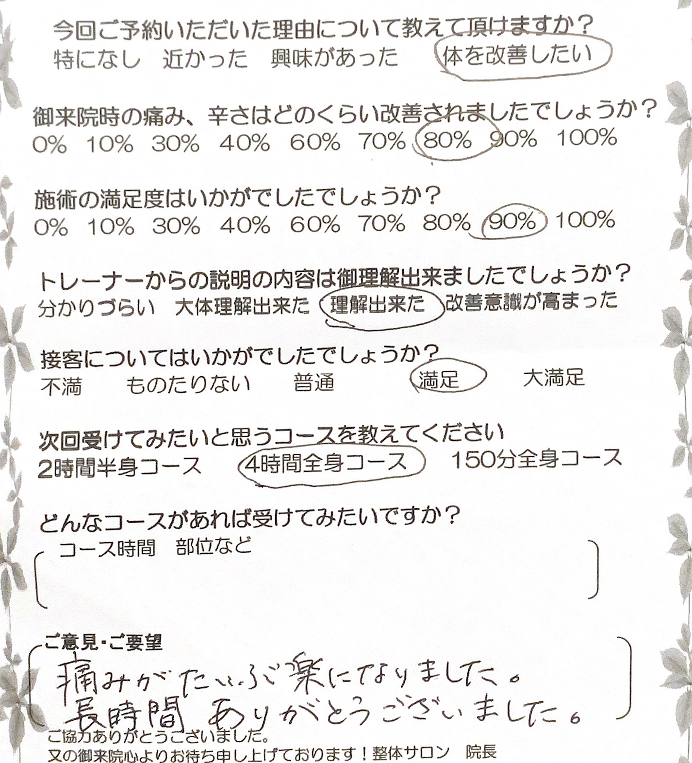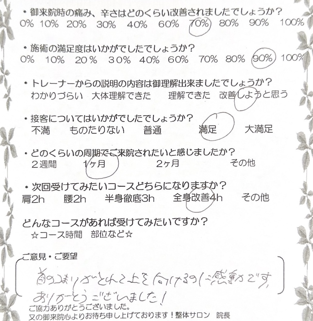 当サロンのスタッフはスクールの時から施術にプラス、コミュニケーションと人間性を大事にします。気配りや思いやりを持って患者様に接することで本当の休養を提供できると考えています。