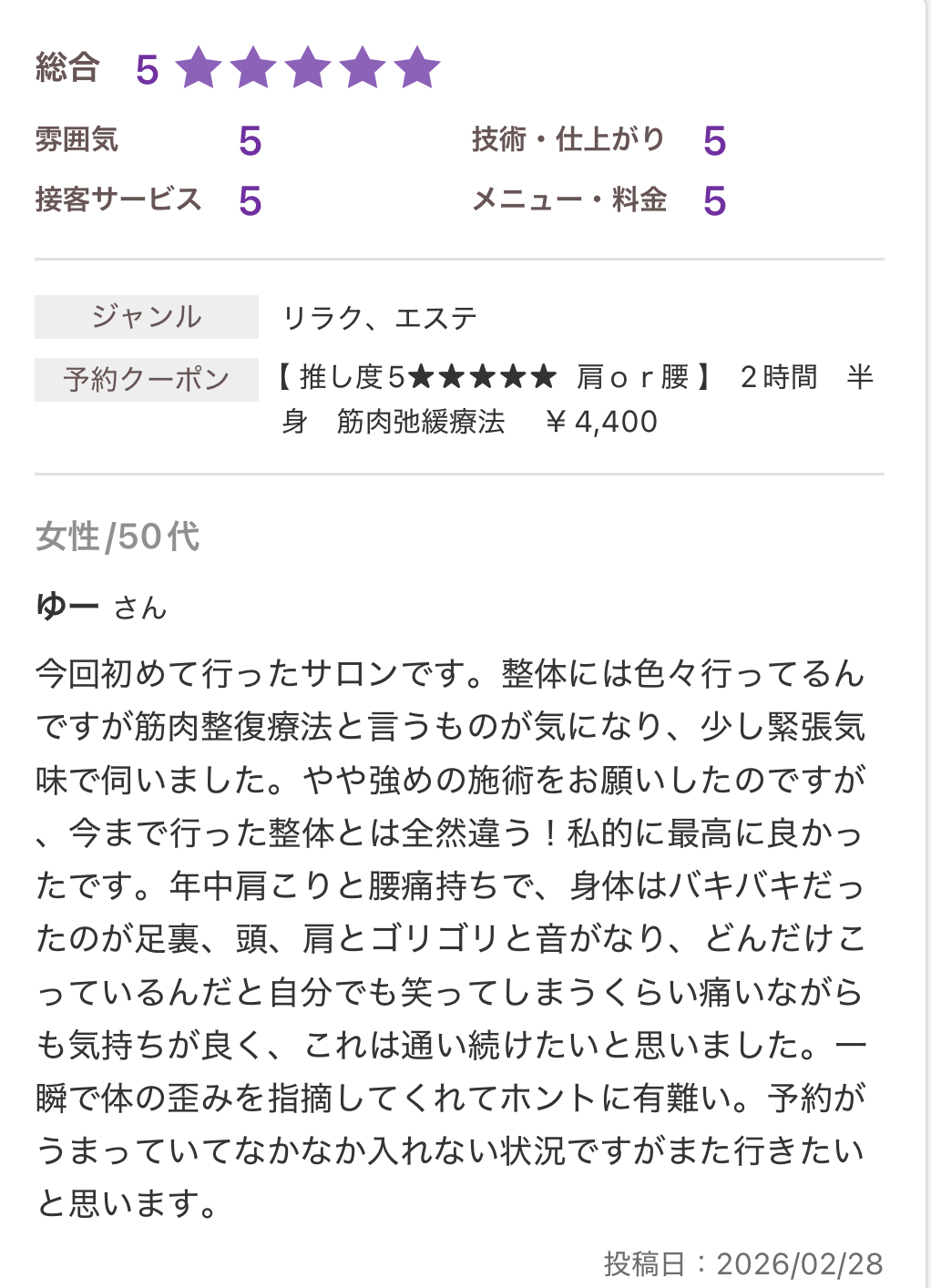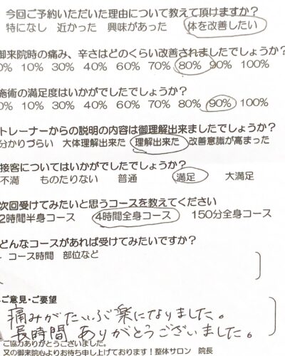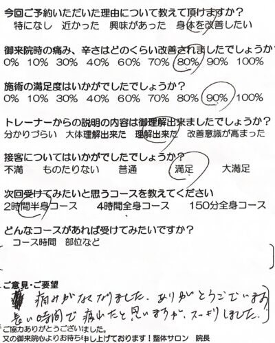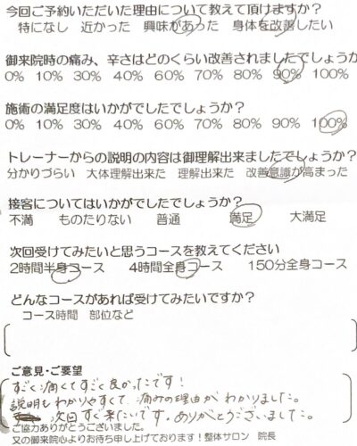 筋肉整復療法 整体サロン