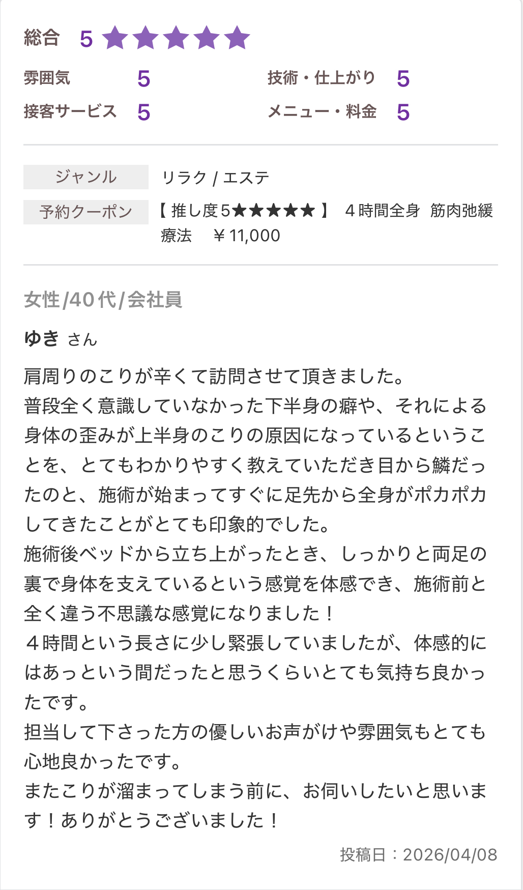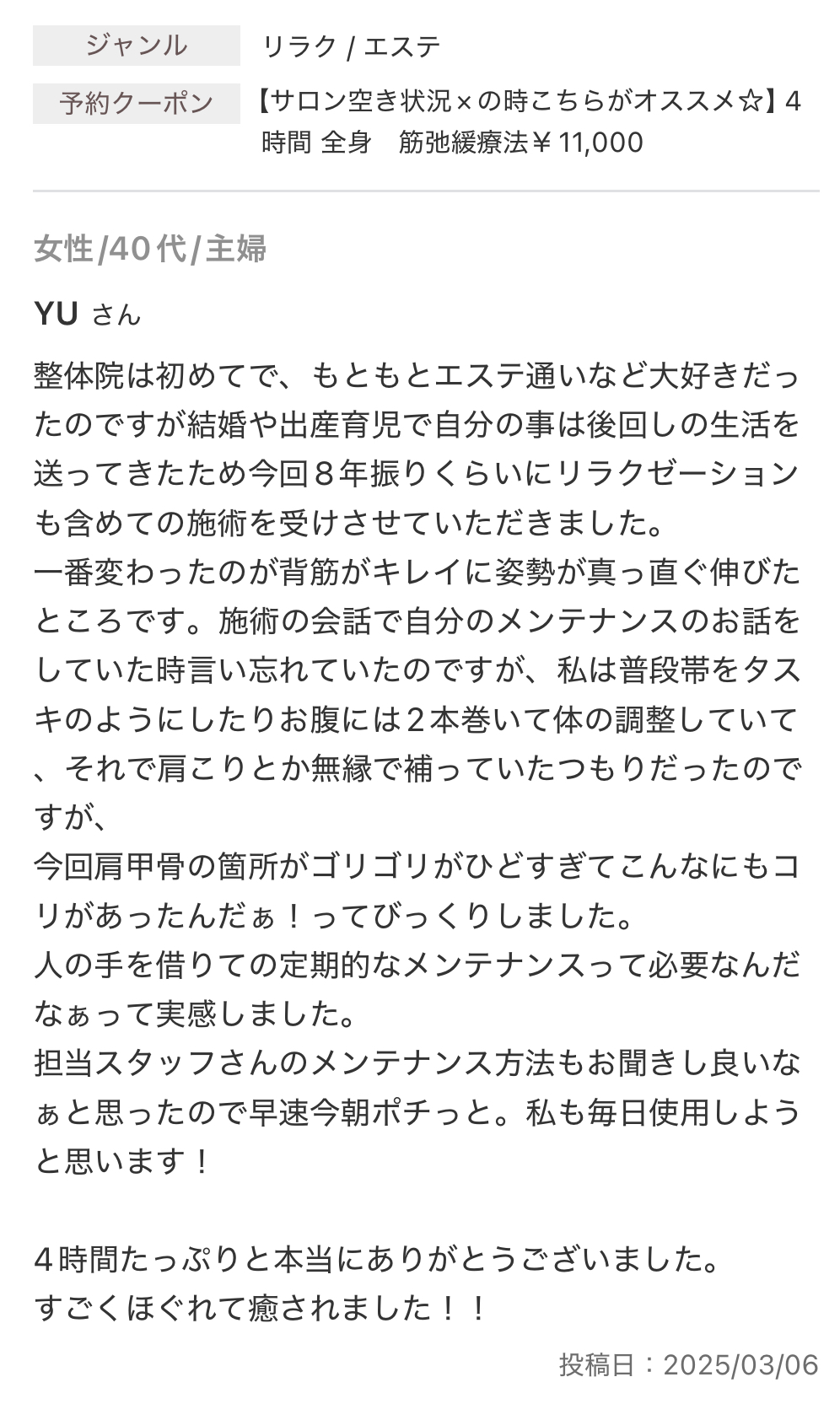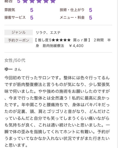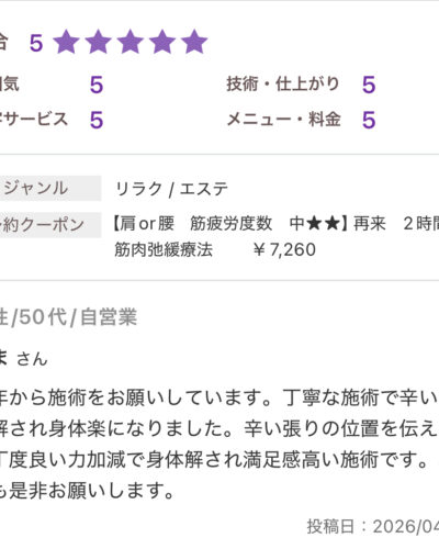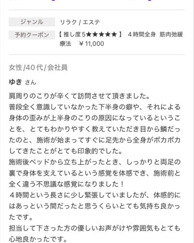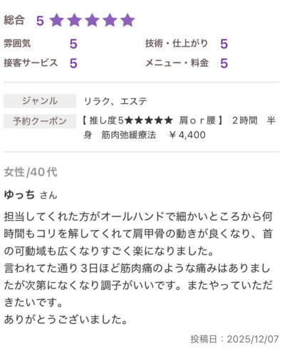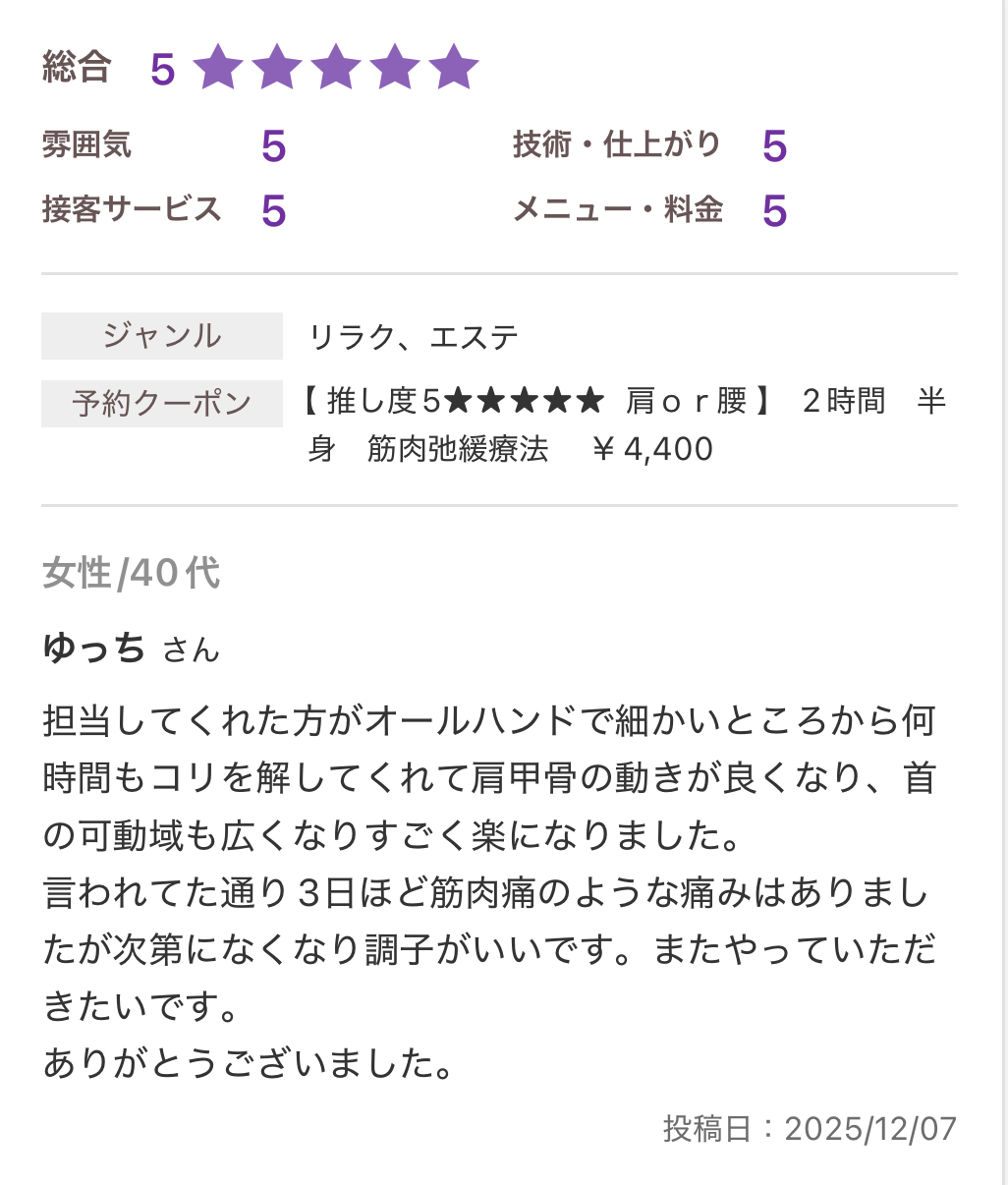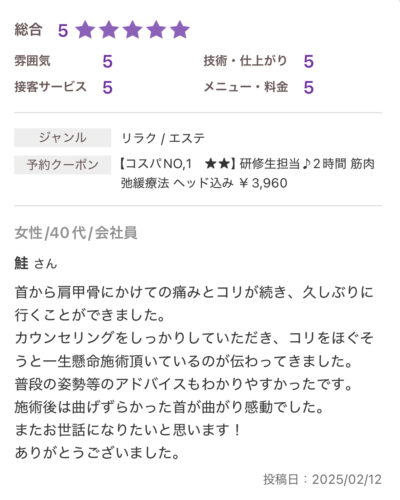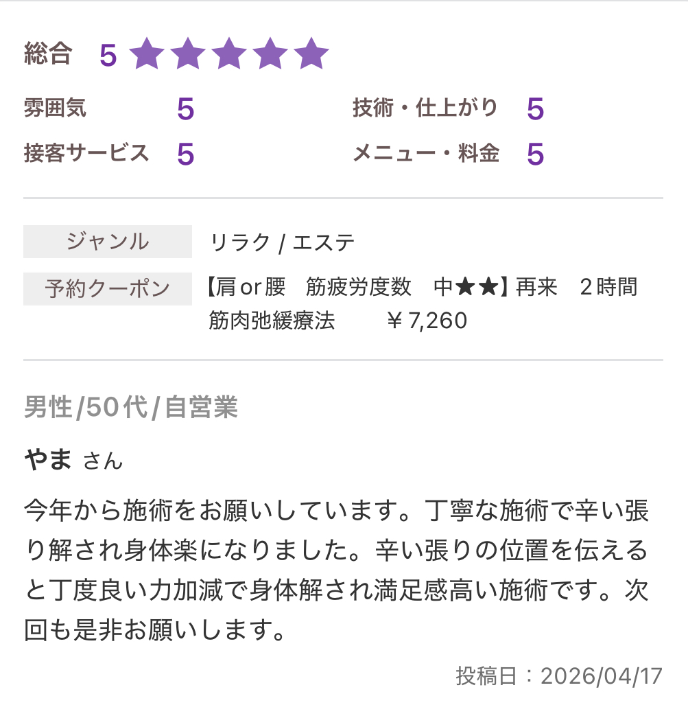 お休みに来る延長線上に当サロンの施術があります。