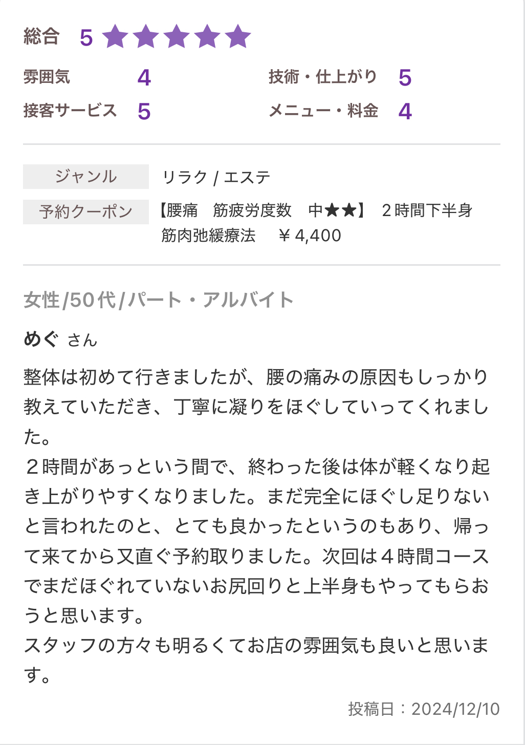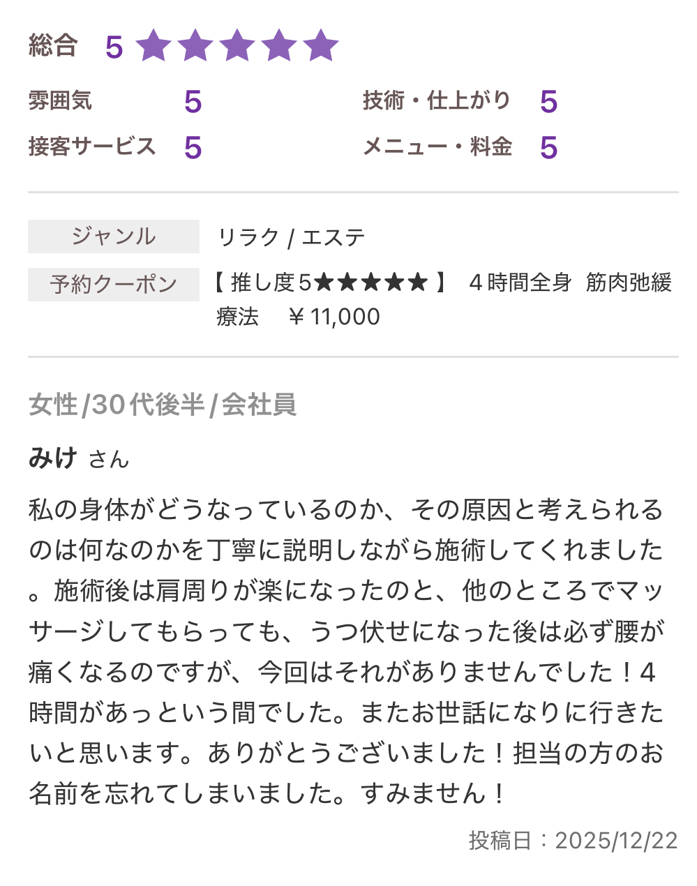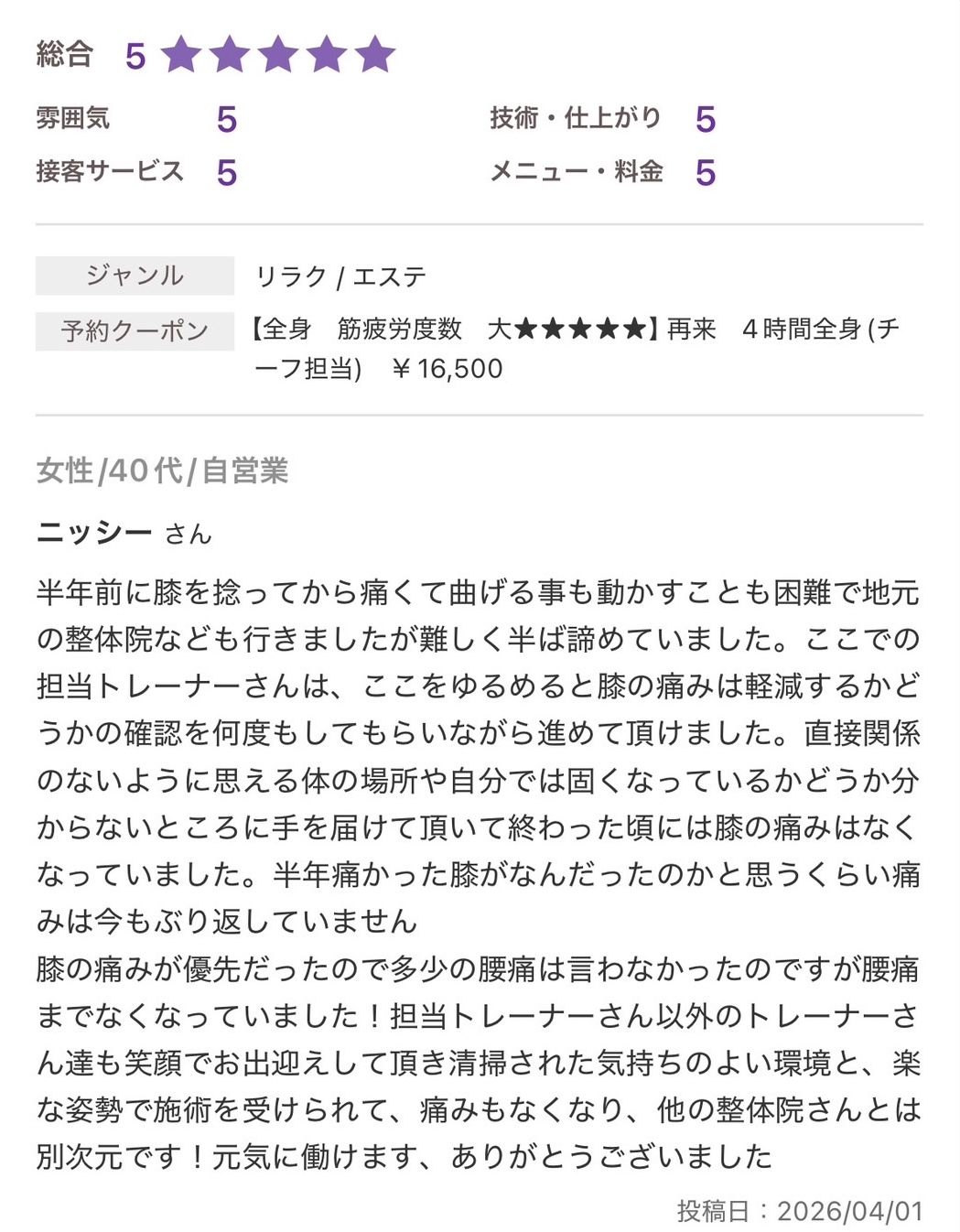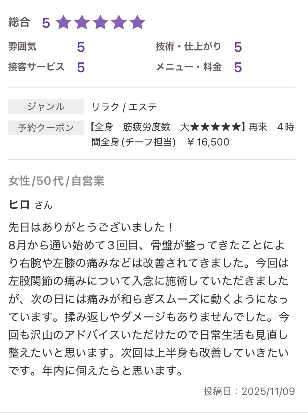 お休みに来る延長線上に当サロンの施術があります。